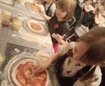 17.10.2025 r. Pszczółki i Biedronki wybrały się na spotkanie z szewcem do Muzeum Szewskiego oraz na warsztaty robienia pizzy do pizzerii „Dobra Opcja” w ramach projektu „Przedszkolak dziś, dorosły jutro!”